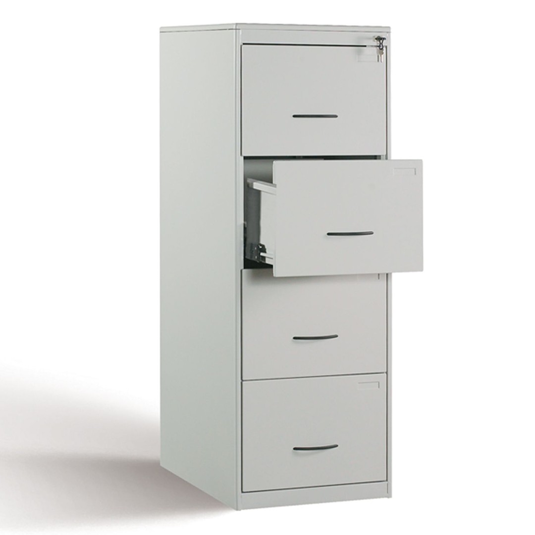 Classificatore in metallo con dispositivo antiribaltamento, serratura centralizzata, maniglie ad incasso, guide telescopiche a totale estrazione a scorrimento su sfere. Dotato di 4 cassetti predisposti per inserimento cartelle sospese interasse 39 cm. Colore predefinito: grigio perla RAL 7035 e piano grigio. Struttura disponibile anche nei colori beige RAL 1013, grigio RAL 7016, alluminio RAL 9006, bianco RAL 9010 e nero RAL 9005. Top disponibile anche nei colori noce, bianco e magnolia. Dimensione 49,5 x 65,8 x 136 H cm