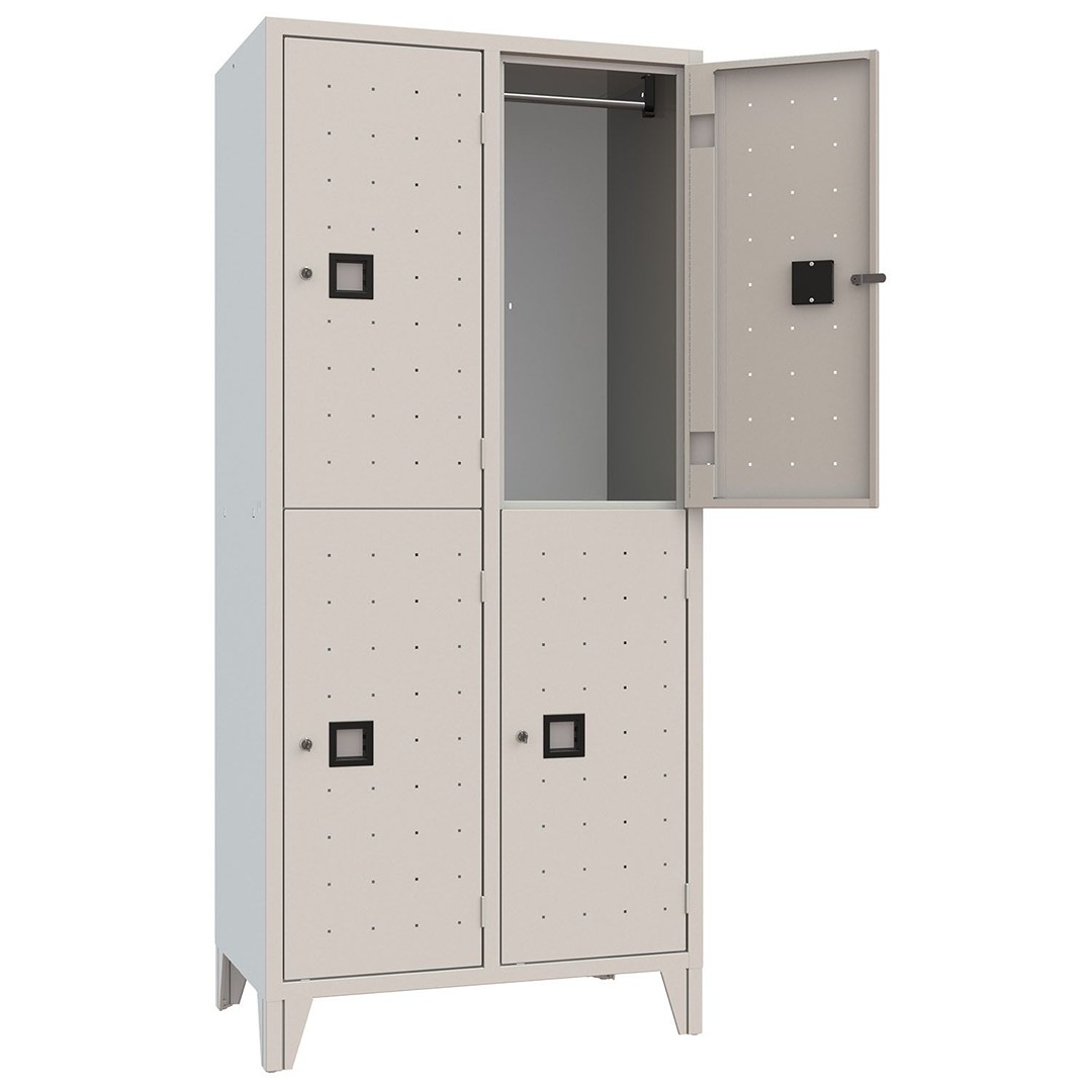 Spogliatoio in metallo a 4 posti con scrocco lucchettabile. Colore predefinito: grigio perla RAL 7035. Dimensione 70 x 35 x 180 h cm