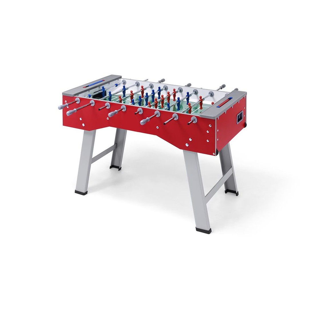 Calciobalilla senza gettoniera con mobile in legno sp. 22 mm, ricoperto in laminato plastico, gambe pieghevoli in scatolare metallico 100 x 40 mm con verniciatura antigraffio, campo gioco in vetro temperato alta resistenza 114,5 x 70 sp. 0,5 cm, aste passanti. Peso netto – 62 Kg . Altezza impugnatura – 85 cm. Dimensioni 140 x 127 x 30 h cm