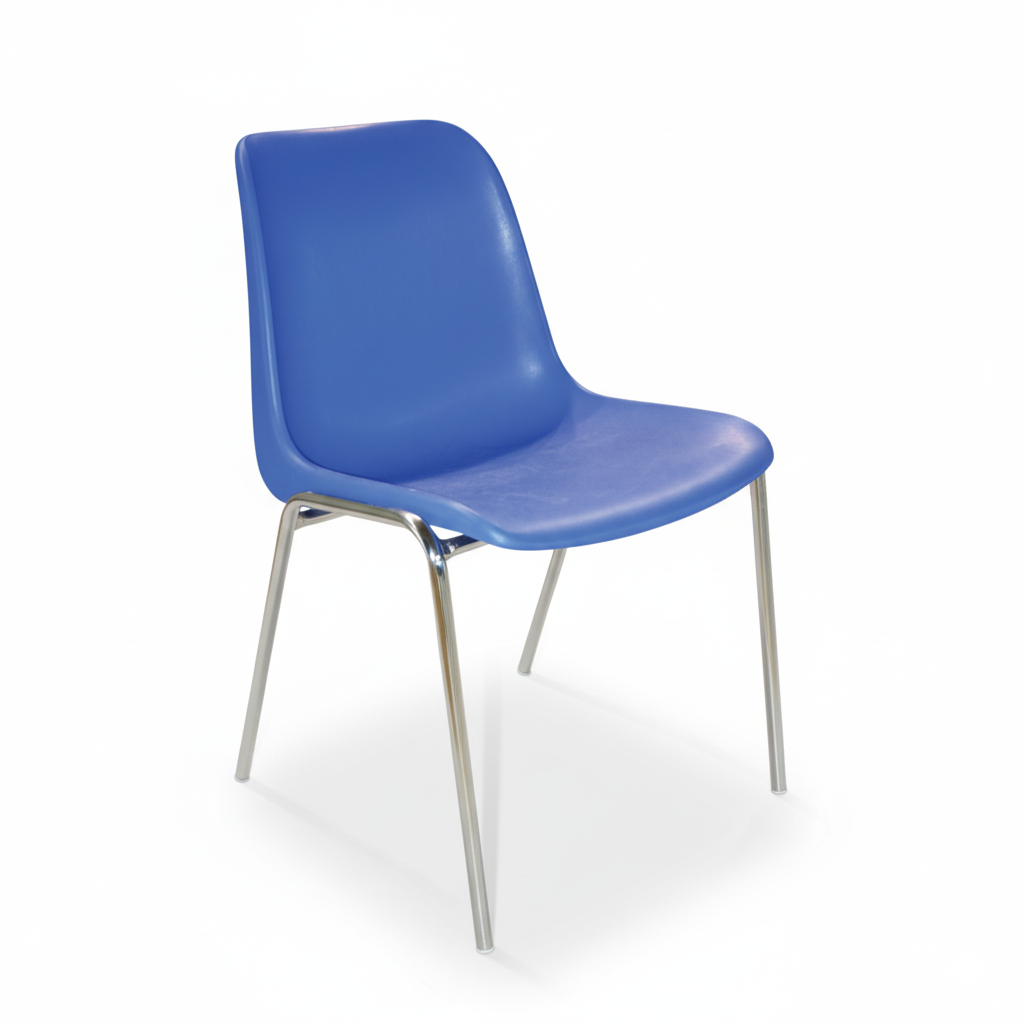 Completo di cassettiera a 3 cassetti su ruote, cm 42×53,3×55 h e sedia in acciaio cromato con scocca in plastica.
