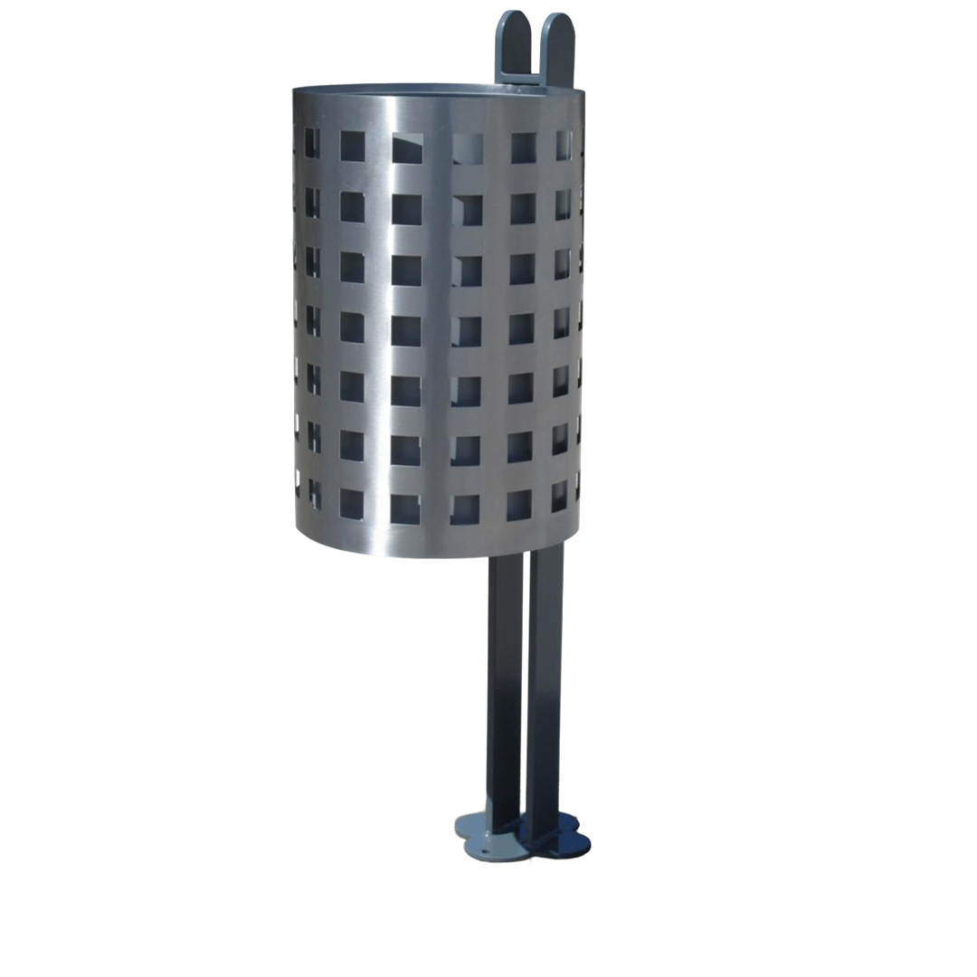 Cestello realizzato interamente in lamiera sagomata e forata d'acciaio, dotato internamente di cestello in lamiera d'acciaio zincato. Dimensioni del cestello diametro cm 27 x 46 h. Palo di sostegno realizzato mediante doppio profilo d'acciaio zincato e piastra d'ancoraggio in lamiera sagomata con tecnologia laser. Capacita' Cestello: 27 litri ca. Ingombro: cm 27 x 33 x 100 h. Ancoraggio: filo pavimento. Kit di montaggio.