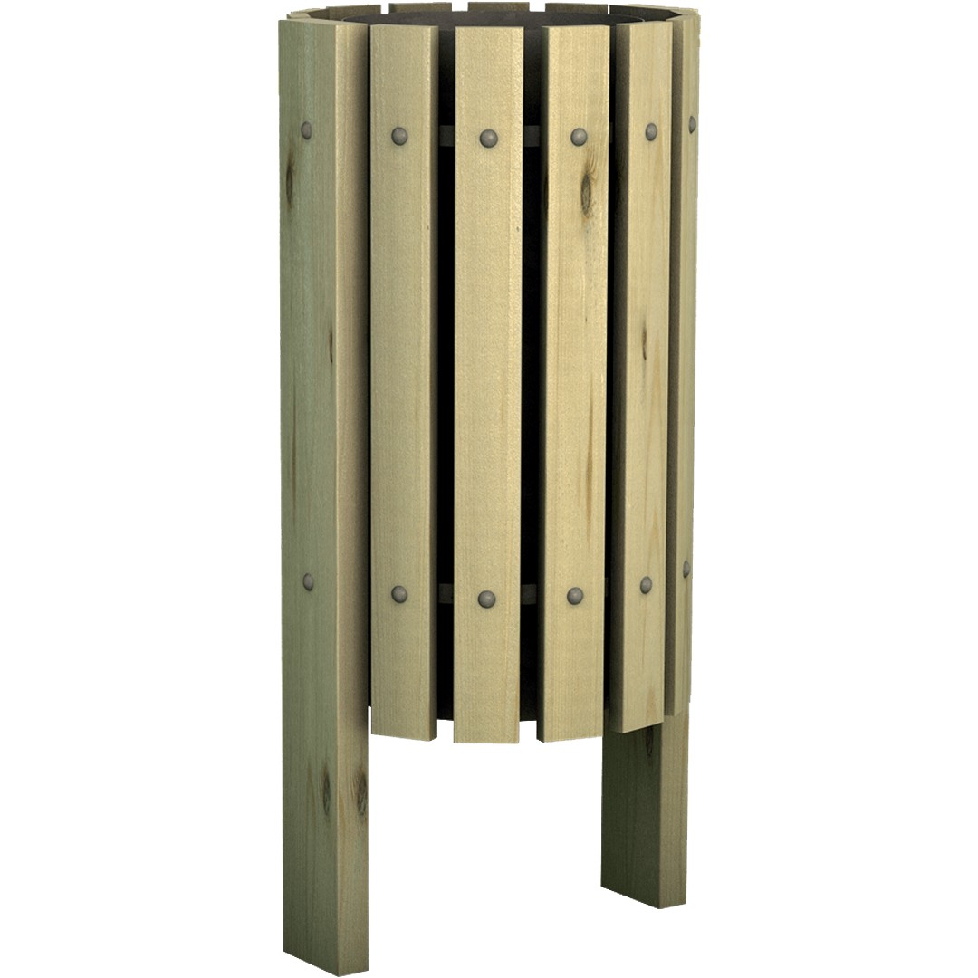 La robusta struttura in acciaio zincato, rivestita da stecche verticali in legno di pino silvestre impregnato in autoclave con spessore 22 mm, rende il cestino il prodotto ideale da inserire in ogni area pubblica o privata. Su richiesta è possibile utilizzare legno di larice. Dimensioni 40 x 45 x h 95 cm