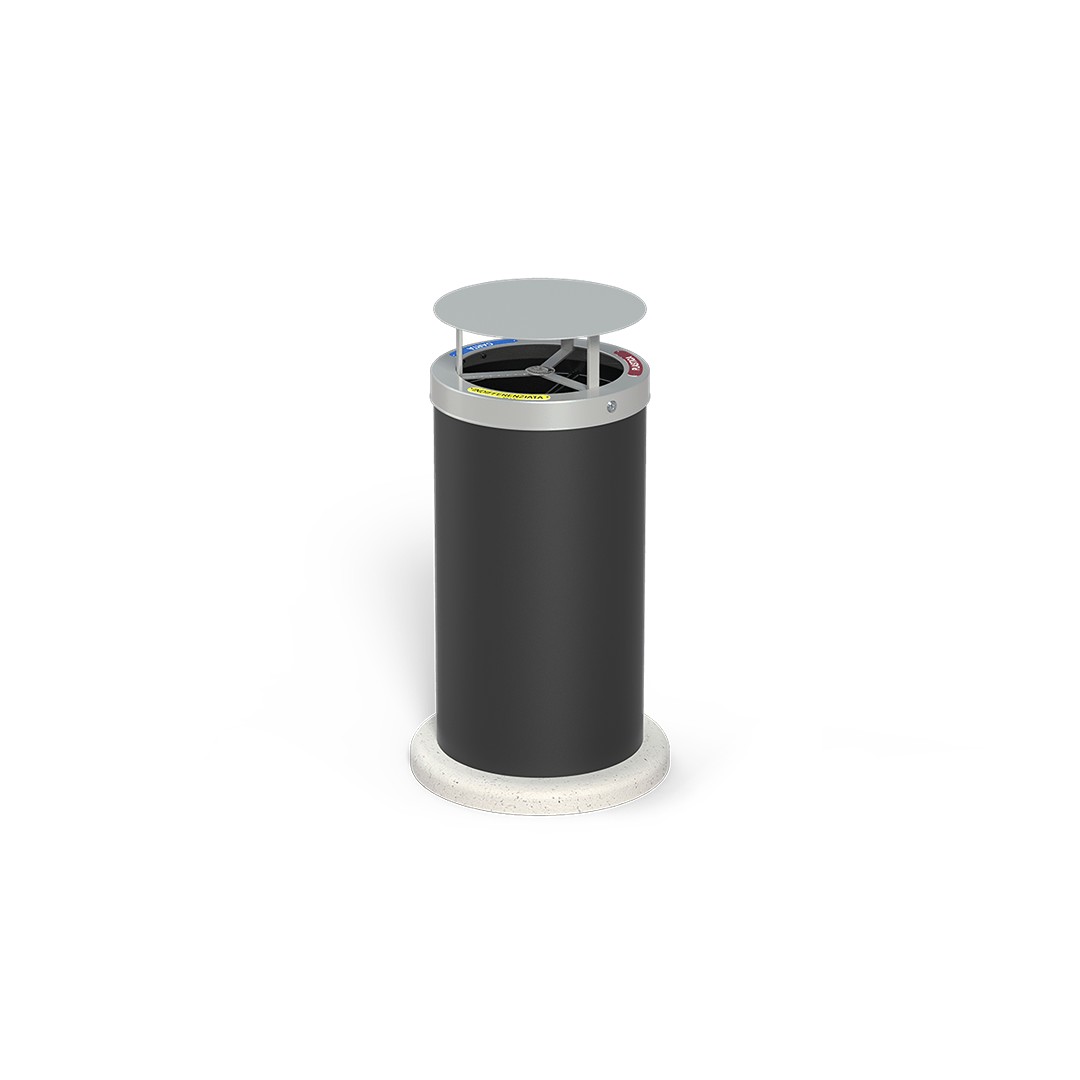 Realizzato in acciaio con coperchio e base in CLS. La struttura, di forma cilindrica, è realizzata in lamiera zincata e suddivisa all’interno in tre scomparti indipendenti, ognuno dotato di reggi-sacco ribaltabile.