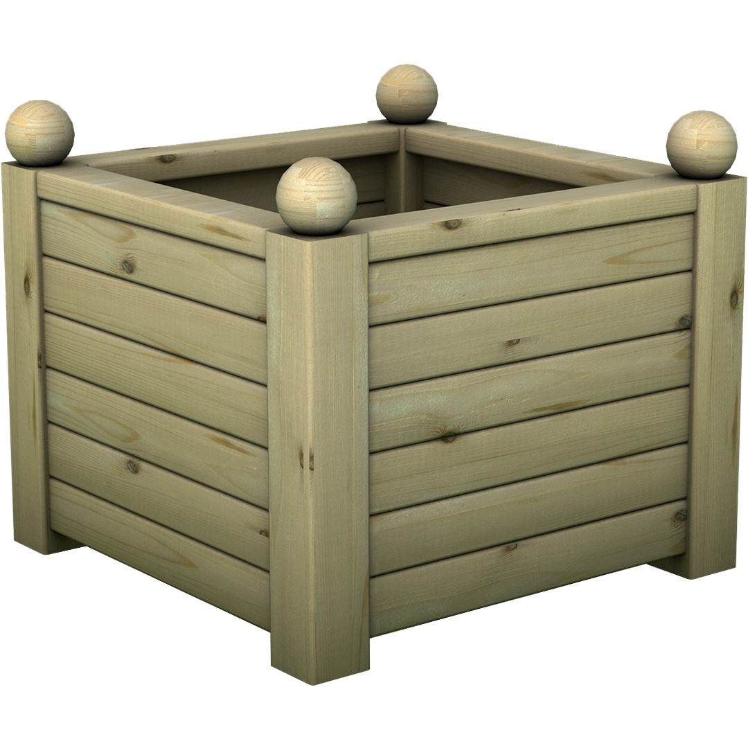 È una fioriera particolarmente moderna ed elegante, ideale anche per rivestire manufatti preesistenti. Le pareti hanno uno spessore di 27 mm e sono realizzate con pino silvestre impregnato in autoclave. Gli angolari sono ornati con sfere di diametro Ø75mm, che conferiscono a questa fioriera un evidente tocco di classe. Su richiesta è possibile produrre la fioriera in legno di larice. Dimensione 60 x 60 x h 55 cm
