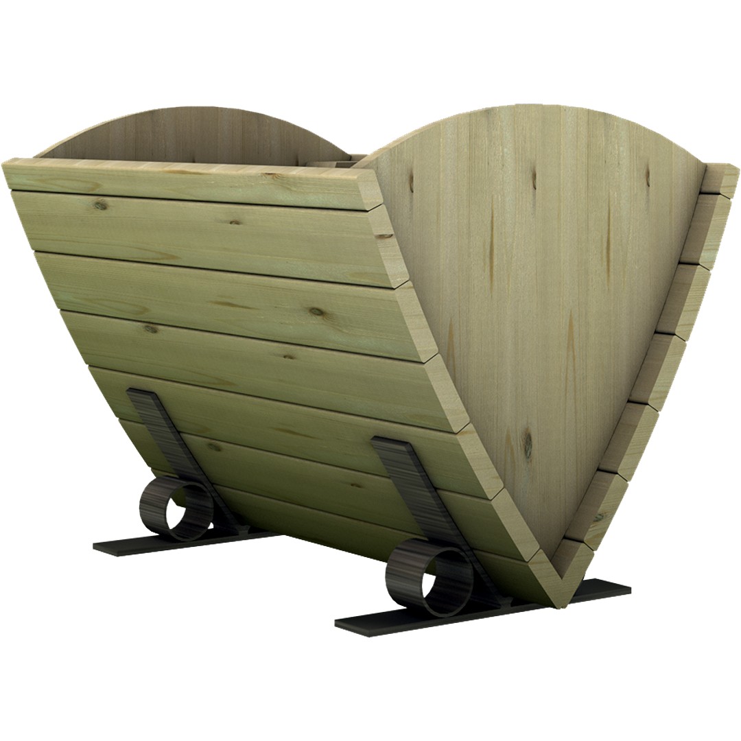 Gli elementi frontali hanno uno spessore di 32 mm e sono realizzati con pino silvestre impregnato in autoclave, mentre per i fianchi viene utilizzato un pannello di legno listellare a 3 strati di pino. Su richiesta è possibile produrla in legno di larice. Dimensione 75 x 100 x h 75 cm