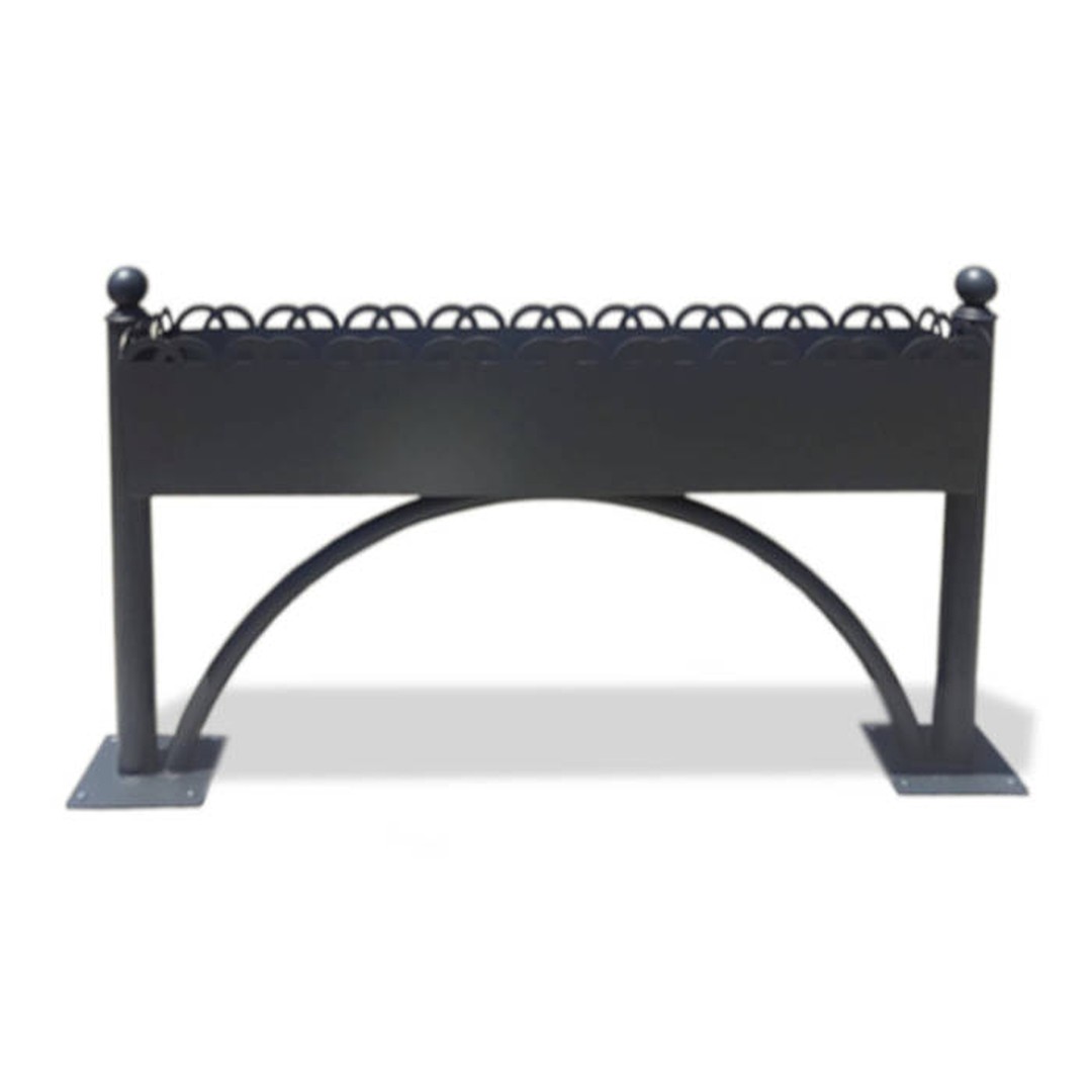 Barriera parapedonale per arredo urbano, costituita da una struttura in acciaio con basi predisposte per il tassellamento al suolo. Nella parte superiore presenta uno spazio adibito a fioriera che la rende particolarmente elegante e adatta agli spazi immersi nel verde. Dimensioni: L200 x P15 x H90 cm. Fissaggio: da tassellare. Fornita montata.