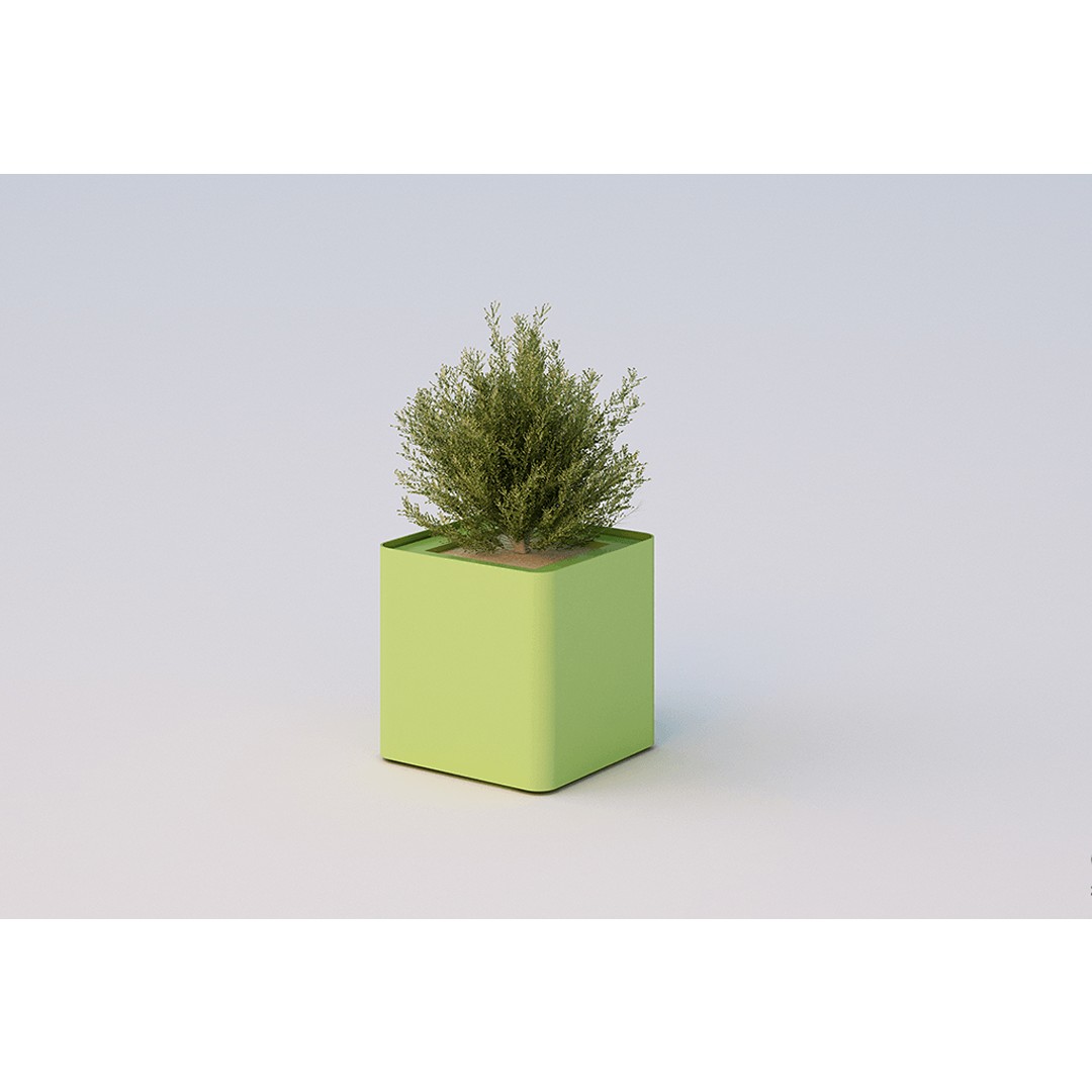 Dalla particolare forma quadra, la fioriera è costituita da n. 2 moduli caratterizzati da pannellatura ad angoli stondati, realizzata in lamiera di acciaio zincata. I moduli sono irrigiditi da telaio di base interno costituito da supporti sagomati con tecnologia taglio laser, ricavati da lamiera di acciaio zincato.