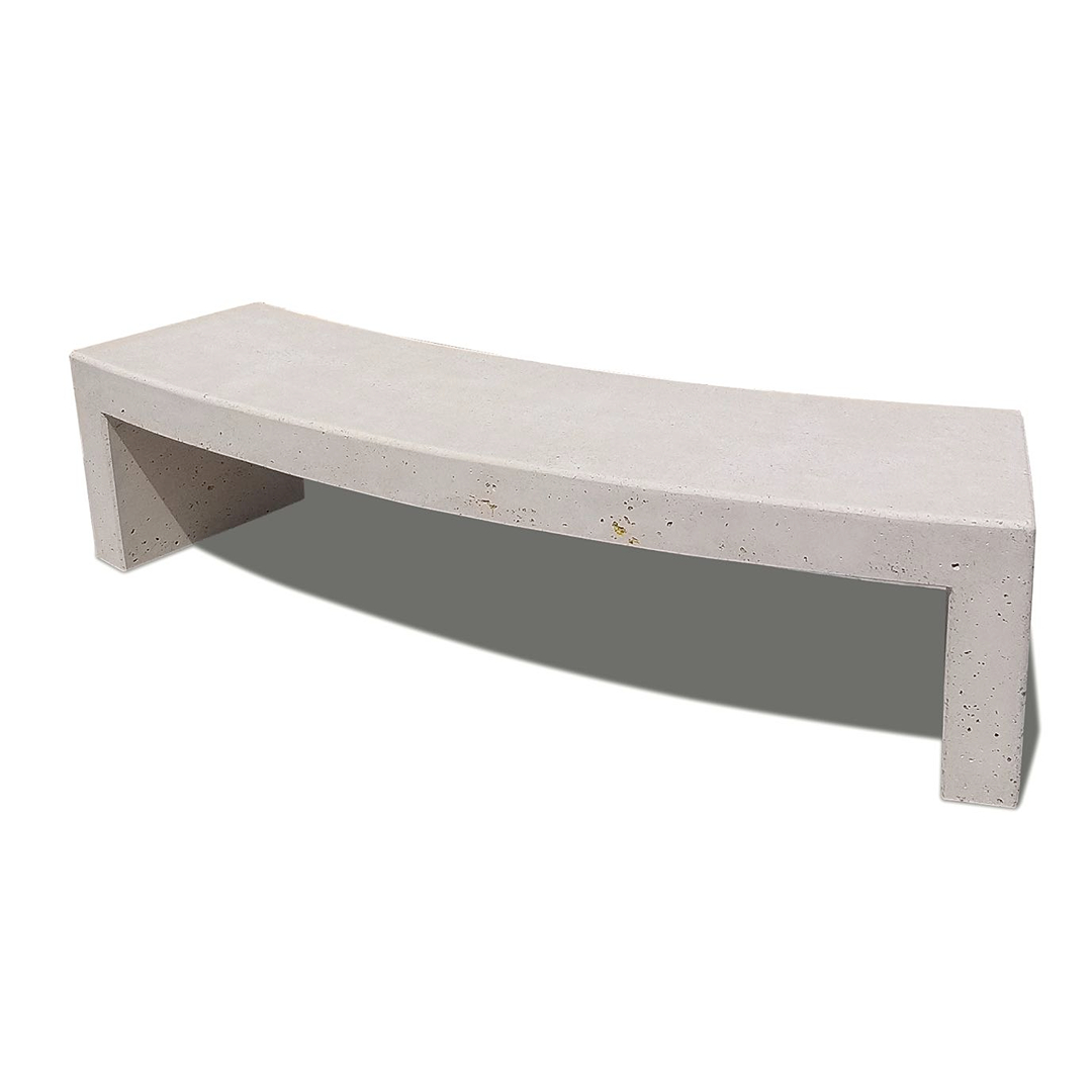 Panchina senza schienale realizzata in calcestruzzo bianco effetto pietra, armato, vibrato e levigato, dalla forma convessa. Trattamento idrorepellente antidegrado lucido per esterno, effetto naturale. Panchina modulabile.