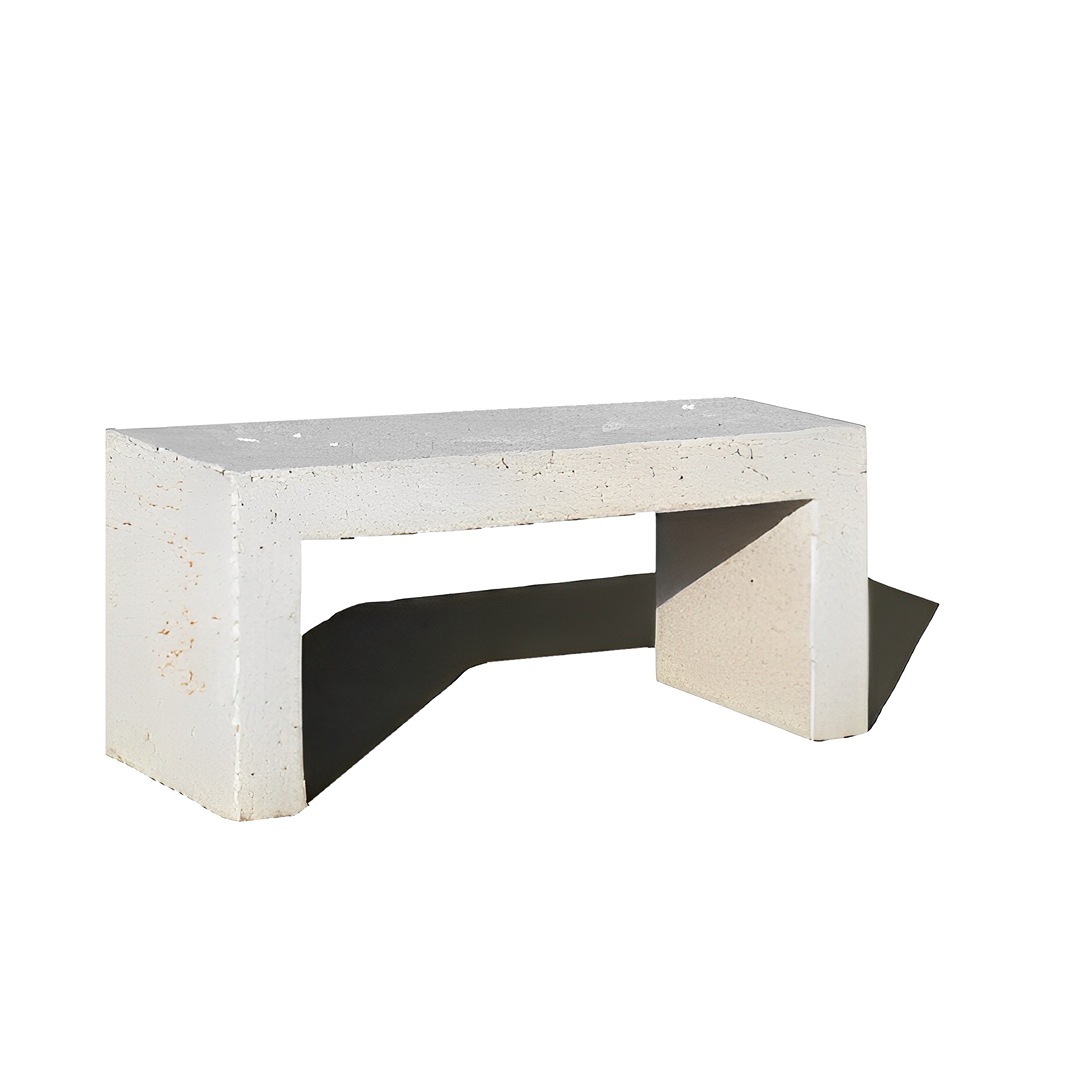 Panchina senza schienale in calcestruzzo bianco finto travertino