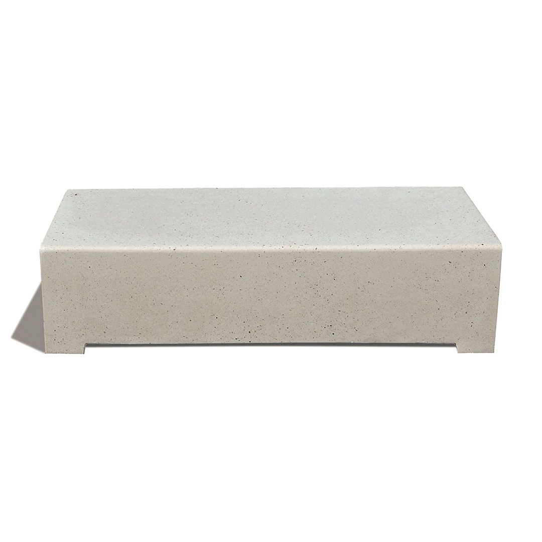 Panchina senza schienale realizzata in calcestruzzo bianco effetto pietra, armato, vibrato e levigato. Trattamento idrorepellente antidegrado per esterno. Articolo fornito già montato.