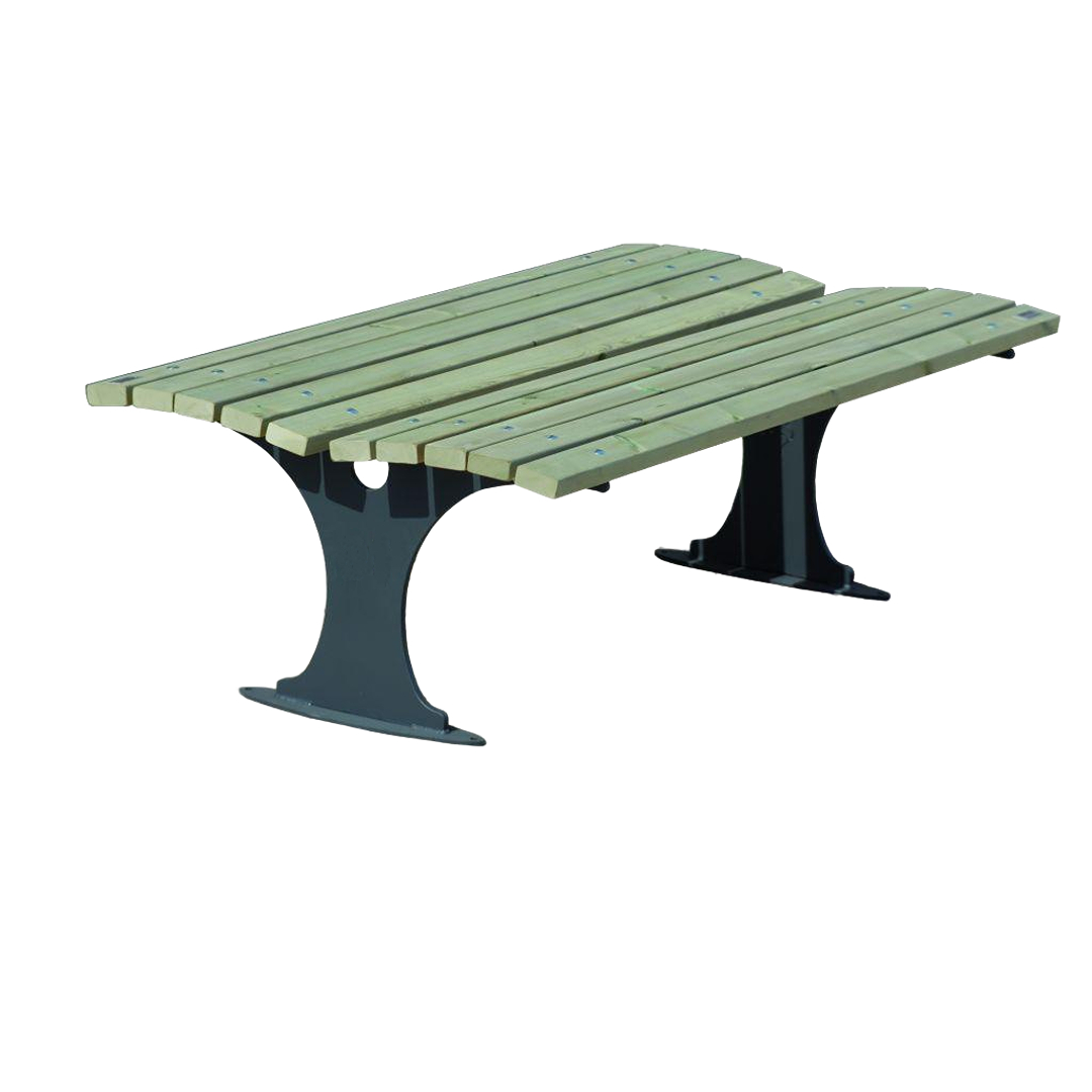 Panchina con supporti realizzati in lamiera sagomata con tecnologia laser spessore 60/10 dotati di piastra ovale per l'ancoraggio al suolo. Seduta realizzata in legno di pino nordico impregnato in autoclave mediante sali atossici sez. mm. 70 x 30 x 1500. Ingombro: cm 150 x 76 x 45 h. Ancoraggio: filo al terreno. Kit di montaggio. PANCHINA COSTRUITA SECONDO REQUISITI DI SICUREZZA E METODI DI PROVA UNI 11306:2009