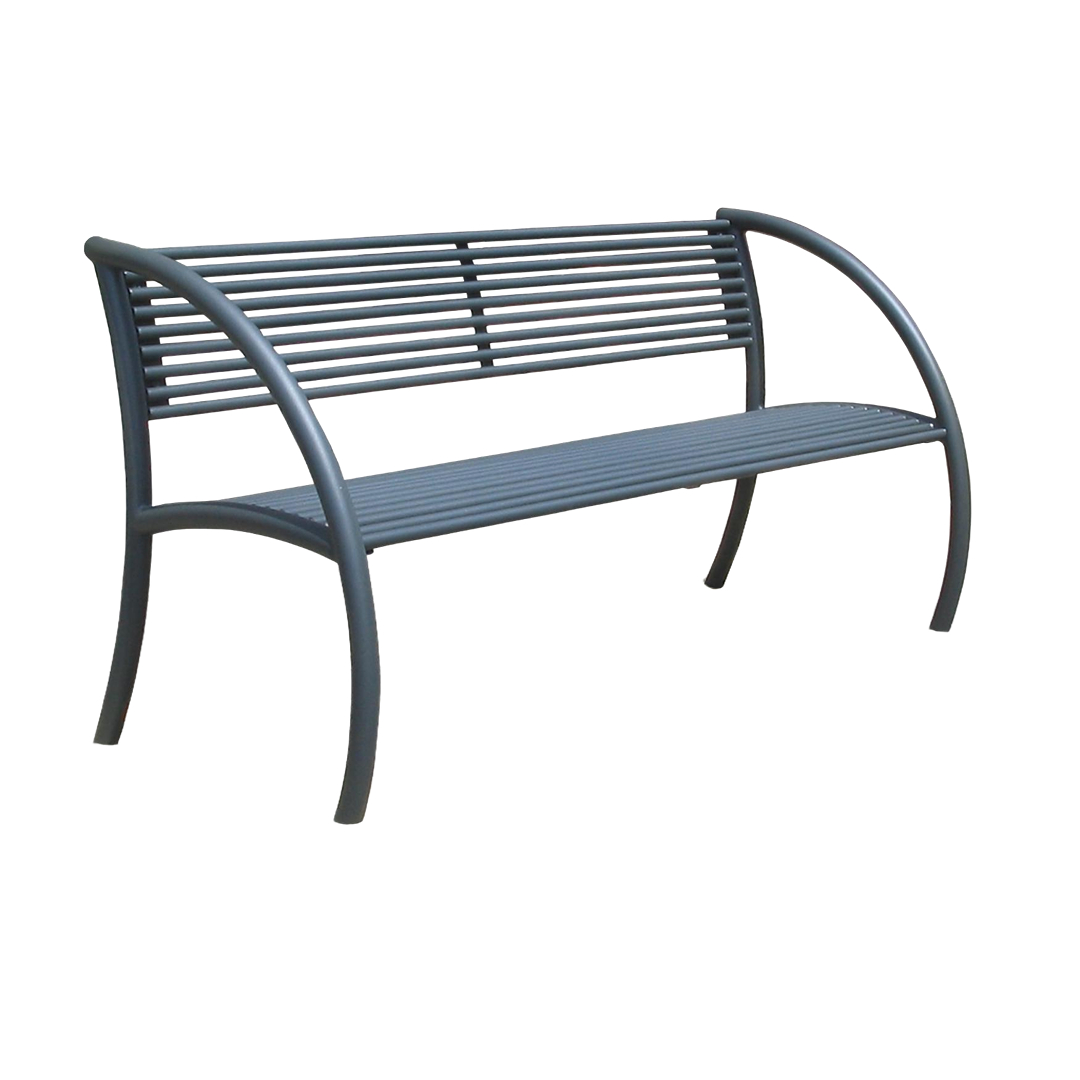 Supporti in tubo tondo d'acciaio zincato diametro mm. 40. Seduta e schienale composti da doghe in tubo tondo d'acciaio zincato diametro mm. 20. Ingombro: cm 158 x 62 x 79 h. - altezza seduta cm 45. Ancoraggio: filo al terreno. Kit di montaggio. PANCHINA COSTRUITA SECONDO REQUISITI DI SICUREZZA E METODI DI PROVA UNI 11306:2009