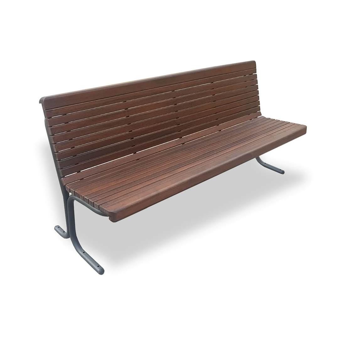 Ideale per arricchire parchi pubblici e ville comunali. Costituita da base in acciaio zincato e seduta e schienale in legno esotico. Caratterizzata da uno stile elegante e rustico, perfettamente adattabile agli spazi immersi nel verde come pinete e parchi.