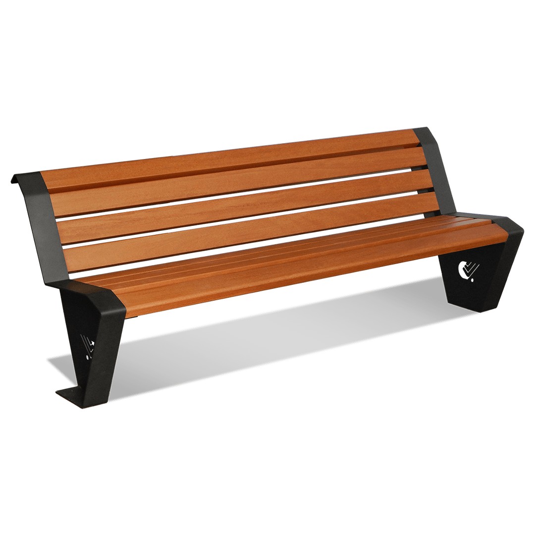 Panchina per arredo urbano con listoni in legno di pino'. Struttura composta da due supporti dalla forma stilizzata ricavati da taglio plasma ad alta definizione, in lamiera zincata. Ogni supporto è bordato, nella parte esterna, da ferro piatto, ed è provvisto di fori per l’ancoraggio al terreno. Seduta-schienale realizzata con listoni in legno di pino di cui i due esterni, provvisti di un angolo stondato. I listoni sono dotati di fori per il fissaggio ai supporti. La panca viene fornita in kit di assemblaggio con viteria in acciaio inox ed istruzioni per il montaggio. La finitura base per questo prodotto è di colore canna fucile. Il cliente può comunque richiedere una finitura differente, a scelta tra i colori RAL a disposizione. Dimensione 190x66x78 h cm