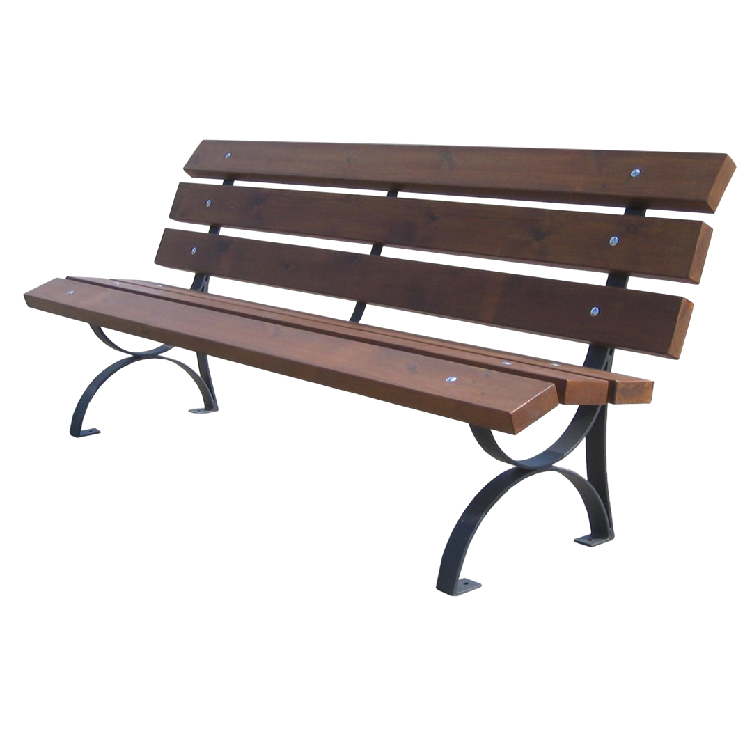Composta da 3 supporti in ferro piatto zincato sez. mm. 50×8 opportunamente sagomati. Seduta e schienale realizzati mediante profili in pino nordico impregnato in autoclave sez. mm. 120x45x1900 mordenzate colore noce.
