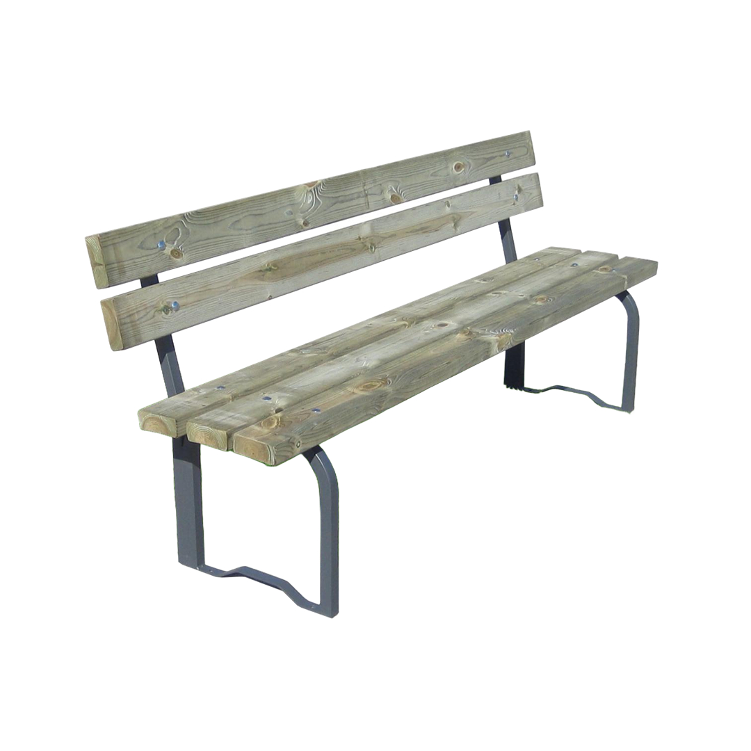 Panchina composta da supporti in tubolare quadrato mm. 30 x 30 e n. 5 profili in pino nordico impregnato in autoclave sezione mm. 110 x 45 x 1900. Ingombro: cm 190 x 63 x 82 h - altezza seduta cm 45. Ancoraggio: filo al terreno. Kit di montaggio. PANCHINA COSTRUITA SECONDO REQUISITI DI SICUREZZA E METODI DI PROVA UNI 11306:2009