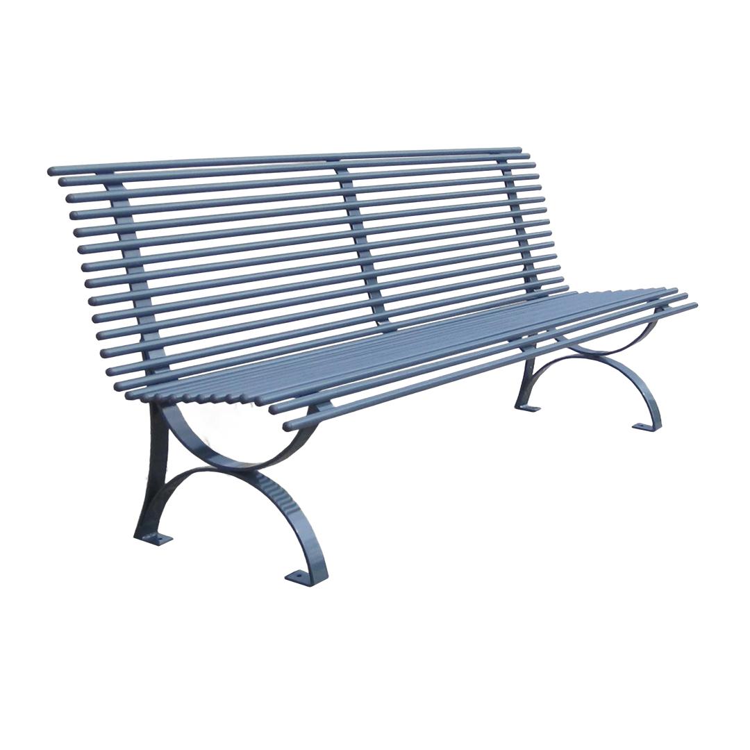 Composta da n. 3 supporti in ferro piatto zincato sez. mm. 50 x 8 opportunamente sagomati. Seduta e schienale realizzati mediante profili in tubo tondo d'acciaio zincato diametro mm. 20 muniti di copritesta semisferici in PE colore nero. Ingombro: cm 200 x 61 x 83 h. - altezza seduta cm 42. Ancoraggio: filo al terreno. Consegnata al cliente gia' montata. PANCHINA COSTRUITA SECONDO REQUISITI DI SICUREZZA E METODI DI PROVA UNI 11306:2009