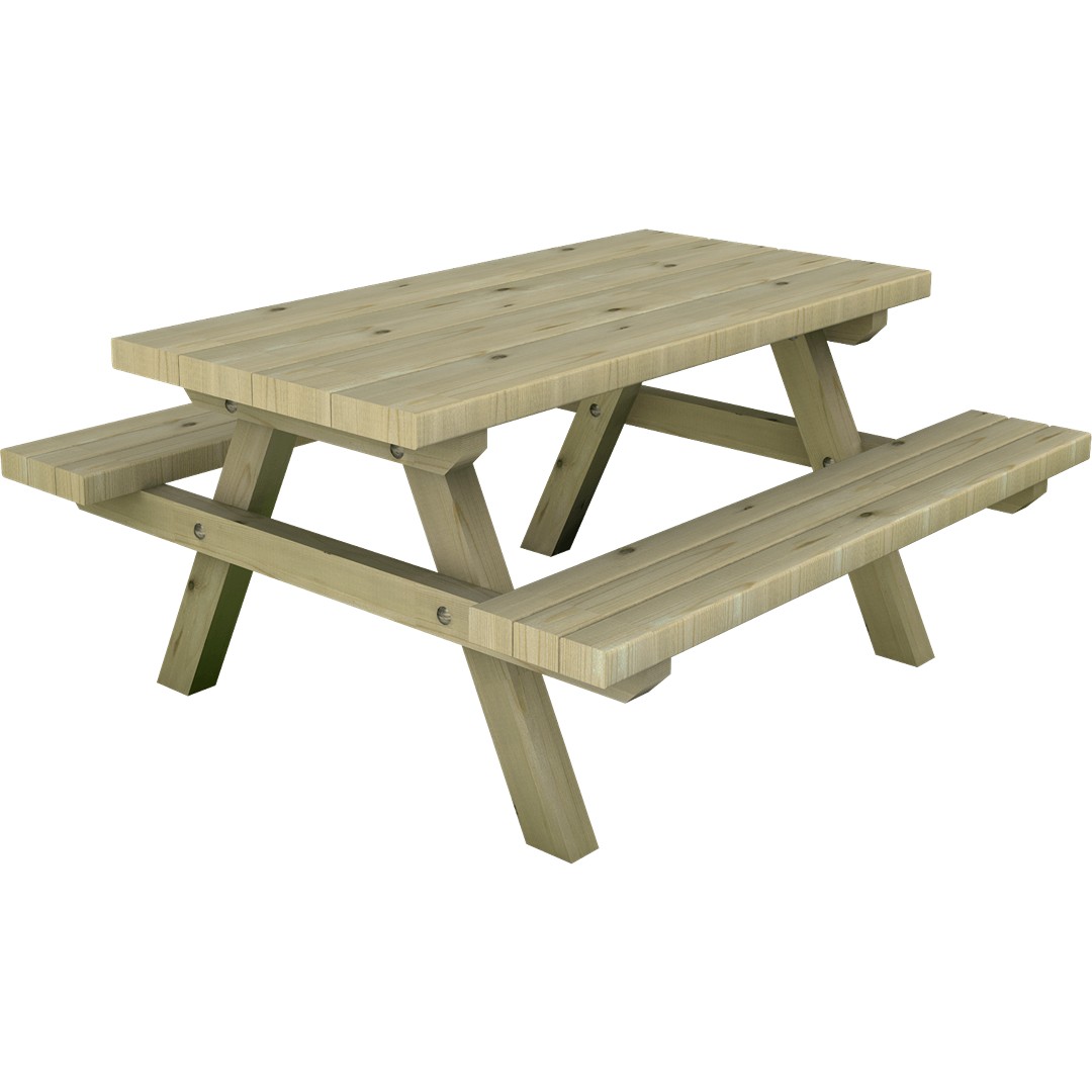 Set pic nic per i più piccoli realizzato in legno di pino silvestre impregnato in autoclave e, su richiesta, può essere verniciato in varie tinte, oppure prodotto utilizzando legno di larice. Spessore delle tavole 30 mm. Dimensione 120 x 115 x 60 h cm