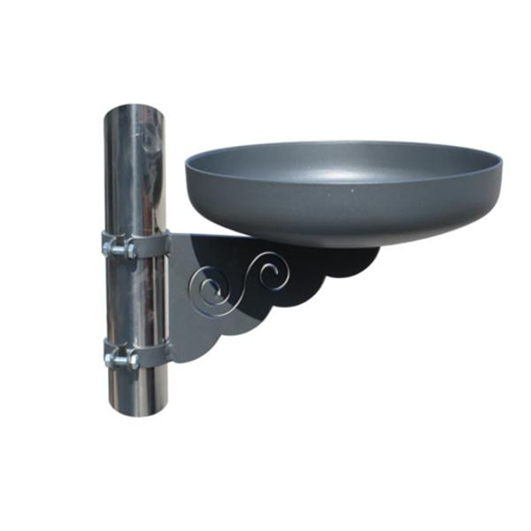Mensola di sostegno del posacenere realizzata in lamiera sagomata con tecnologia laser dotata di graffe per ancoraggio a palo o muro. Posacenere realizzato mediante disco in lamiera stampato. Ingombro: cm 30 x 35 x 20 h. Ancoraggio: predisposto per attacco a palo o muro. Già montato.