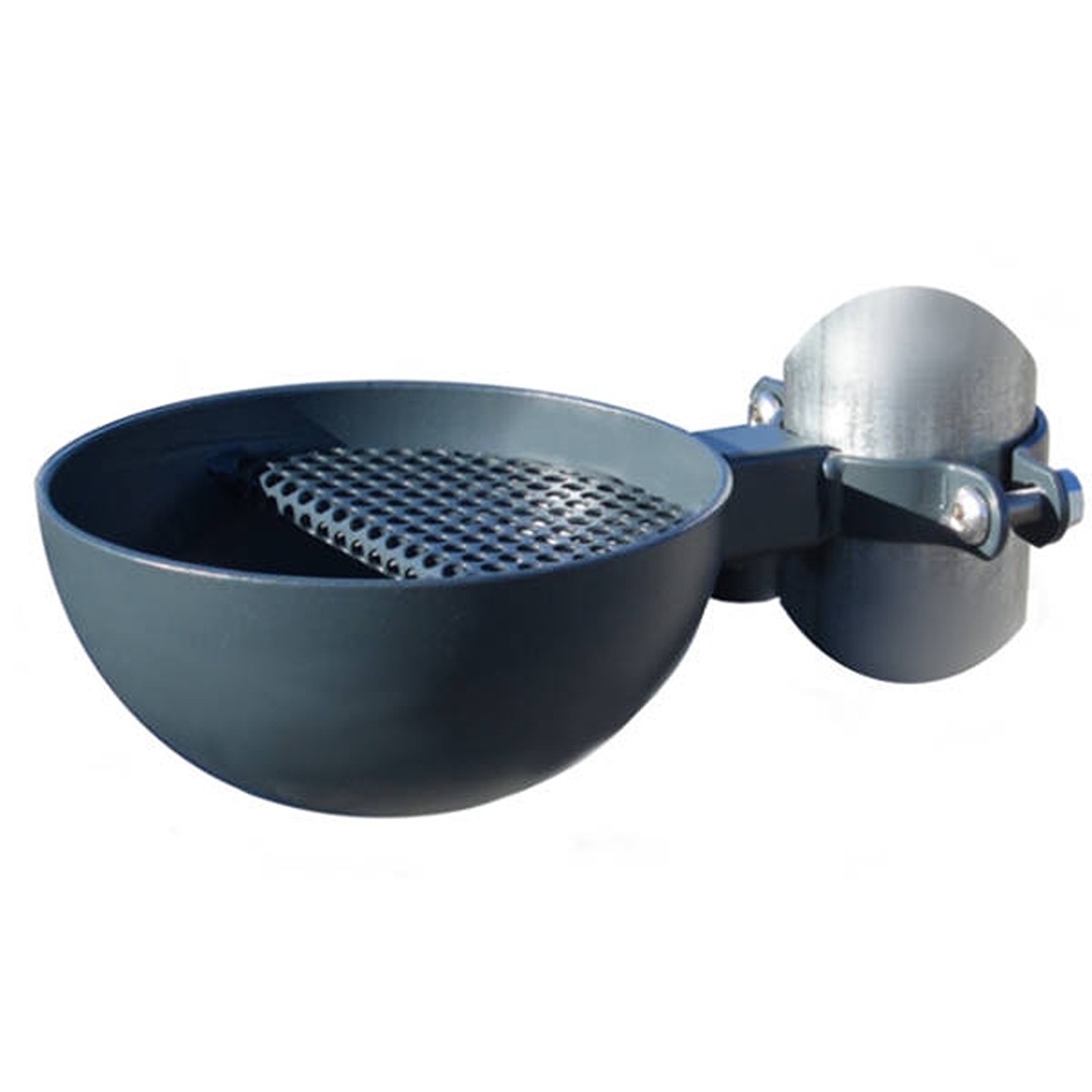 Posacenere composto da mezza sfera diametro mm. 150 dotata di retina per lo spegnimento dei mozziconi e graffe per attacco a palo esistente.