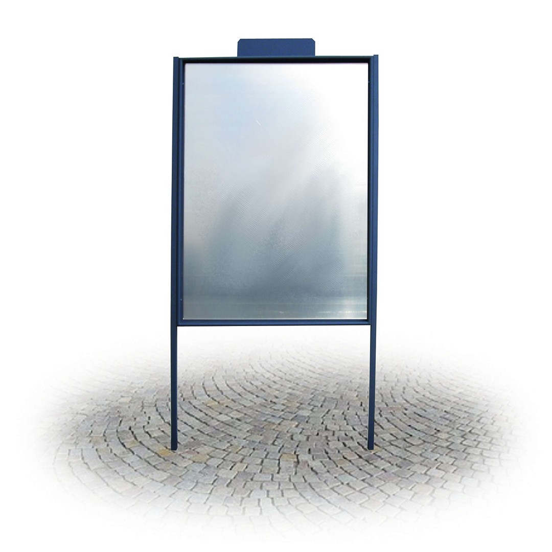 Montanti in tubolare d'acciaio zincato mm. 60 x 30. Tabella monofacciale composta da telaio in tubolare mm. 60 x 30 e lamiera d'acciaio zincato spessore 12/10. Munito di cimasa in lamiera per affissione logo comunale. Ingombro: cm 112 x 300 h - spazio utile per affissione cm 100 x 150 h. Ancoraggio: da interrare.