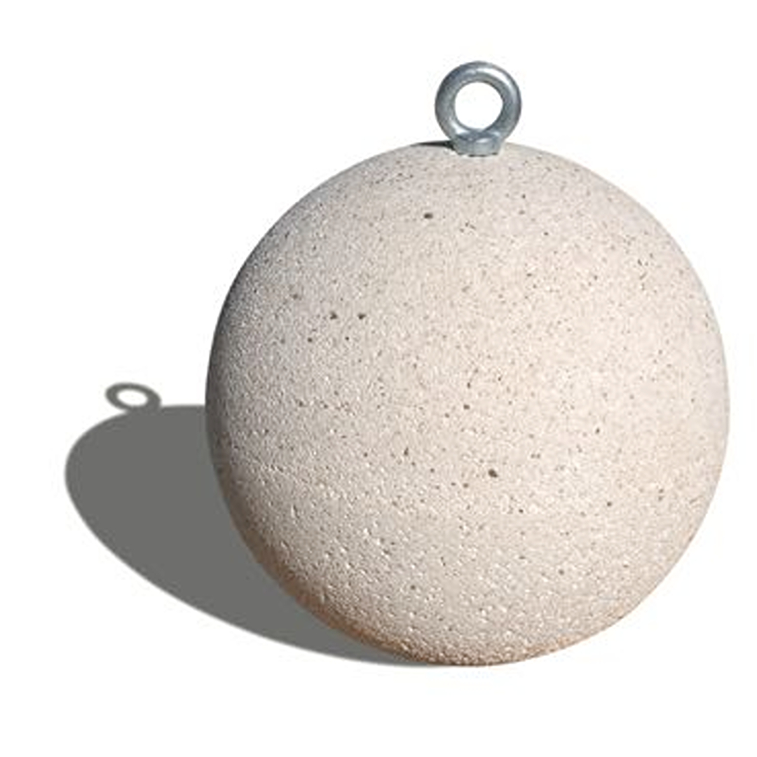 Dissuasore stradale realizzato in calcestruzzo bianco effetto pietra, armato, vibrato e levigato, trattato con del materiale idrorepellente per l’uso esterno, fornito di golfare zincato per facilitarne la movimentazione e per l’applicazione di un eventuale catena. Dimensione diam.40 x 40 h cm - peso 60 kg. Disponibile anche nella versione in finto travertino.