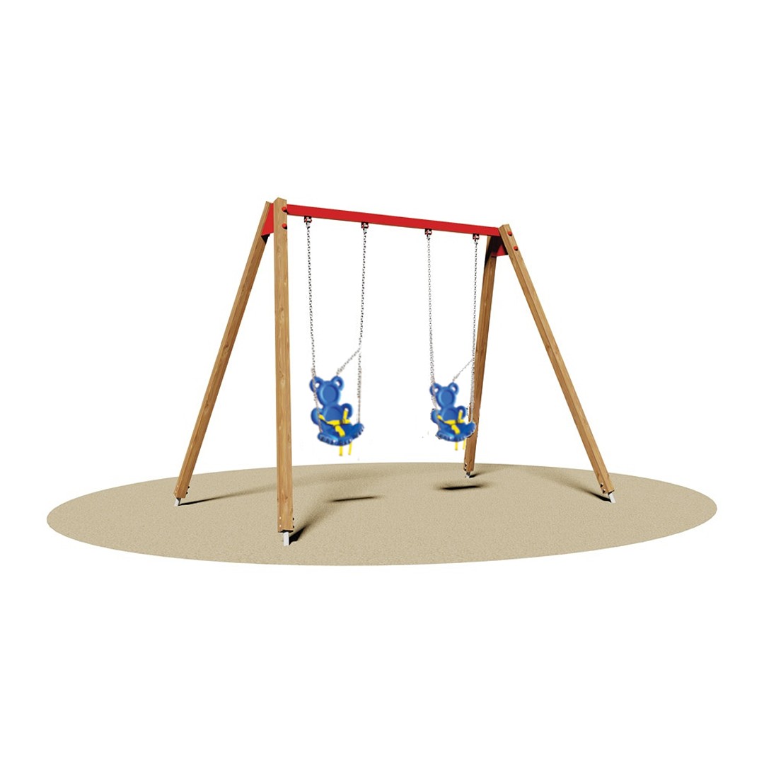 Caratteristiche principali: altalena legno, altalena acciaio, altalena sicurezza, altalena orsetto, altalena esterni,altalena doppia seduta legno lamellare, altalena con struttura in legno e acciaio, altalena certificata TÜV per sicurezza bambini, altalena con sedili a orsetto per parchi, altalena resistente esterni con ancoraggio al suolo