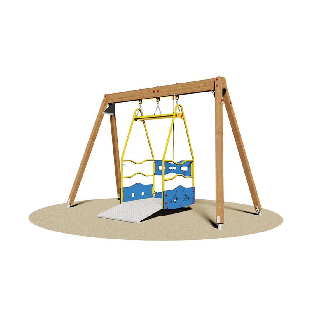 Caratteristiche principali: altalena disabili, altalena piattaforma, altalena acciaio, altalena outdoor, altalena inclusiva,altalena per disabili in legno lamellare,piattaforma oscillante accessibile per carrozzelle,altalena con catene in acciaio inox per sicurezza,altalena outdoor conforme norme EN 1176,altalena inclusiva con pedana ribaltabile