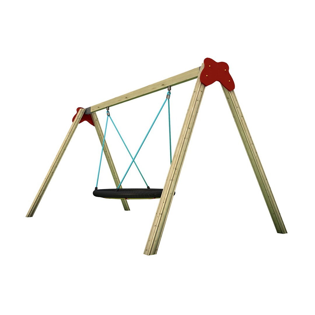 Altalena con struttura portante in lamellare di pino silvestre impregnato in autoclave, decorata da una caratteristica farfalla realizzata in laminato plastico ad alta resistenza. Robusta e sicura, è dotata di cestone in acciaio rivestito in poliuretano, fornito dal leader mondiale per la produzione di sedili per altalene; snodi a rullo certificati; bulloneria con tappi antisvitamento. CARATTERISTICHE CESTONE: Cestone con diametro di 120 cm con un’anima potante in acciaio. È rivestito in poliuretano integrale a sezione tonda e viene sorretto da quattro funi Erkules di diametro 16 mm. Dimensioni 240 x 350 x 230 h cm.