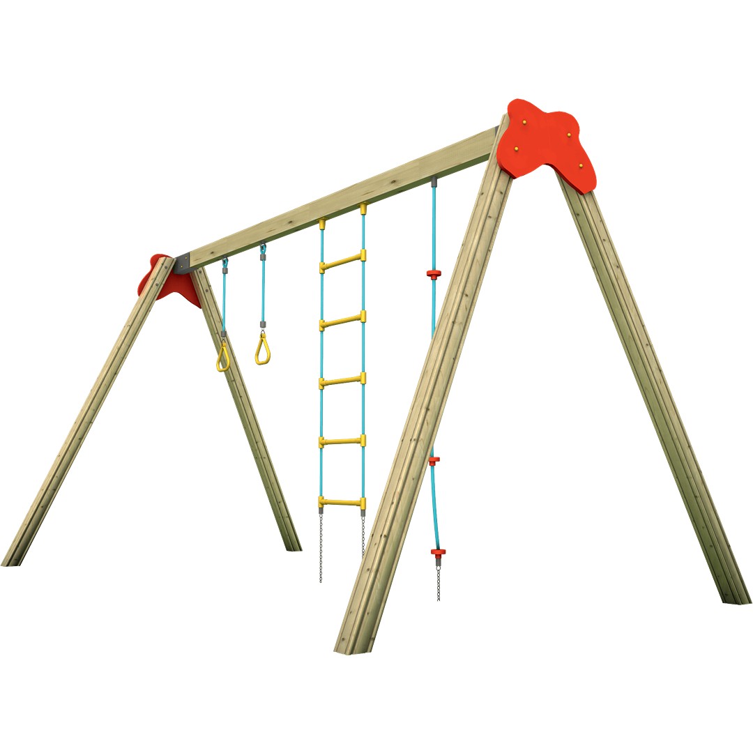 Palestrina realizzata con elementi in legno lamellare trattati con un procedimento di impregnazione in autoclave, per aumentarne la resistenza agli agenti atmosferici. Riunisce numerosi attrezzi che facilitano la pratica di numerosi esercizi, rendendo possibile dare libero sfogo alla fantasia dei nostri bambini. Dimensioni 240 x 400 x h 200 cm